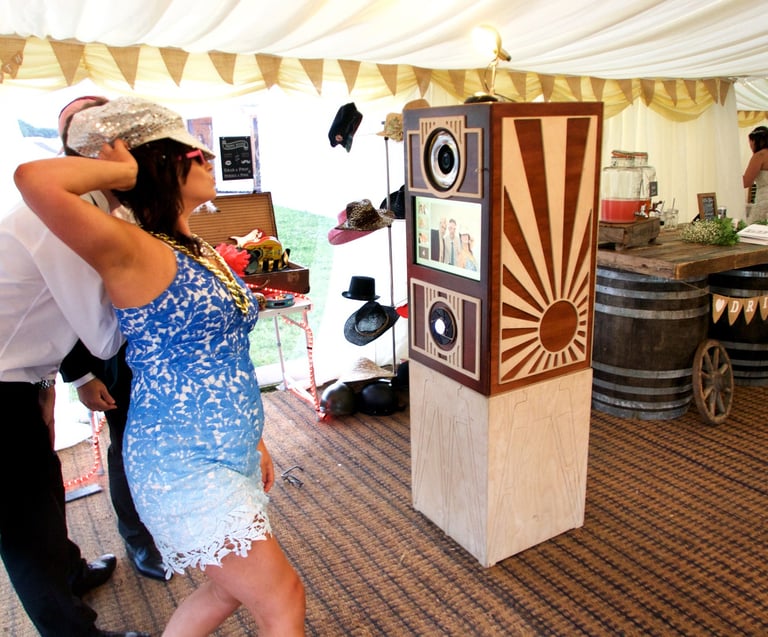 Bertie est un photobooth intérieur au style vintage, entièrement conçu à la main, pensé pour apporter une touche unique de fun et d’élégance à votre mariage, anniversaire ou événement.